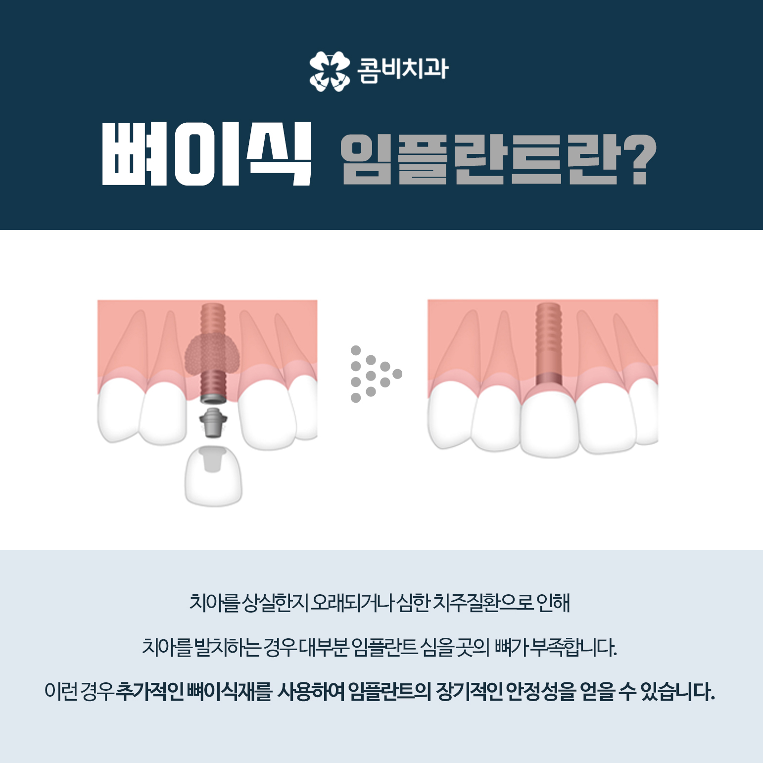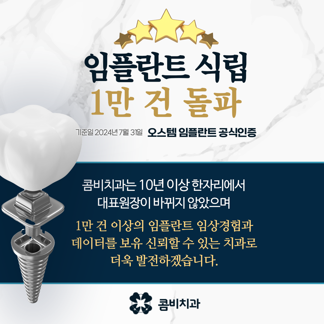 그리고 임플란트는 한 번 심고 끝나는 치료가 아니며 치료 후 관리가 정말 중요한데 아무리 잘 심어도 관리가 소홀하면 임플란트 주위염이라는 염증이 생길 수 있으며 자연치아와 달리 임플란트는 신경이 없기 때문에, 통증이 생기기 전까지는 문제가 생긴 줄도 모르고 방치하는 경우가 많아요.