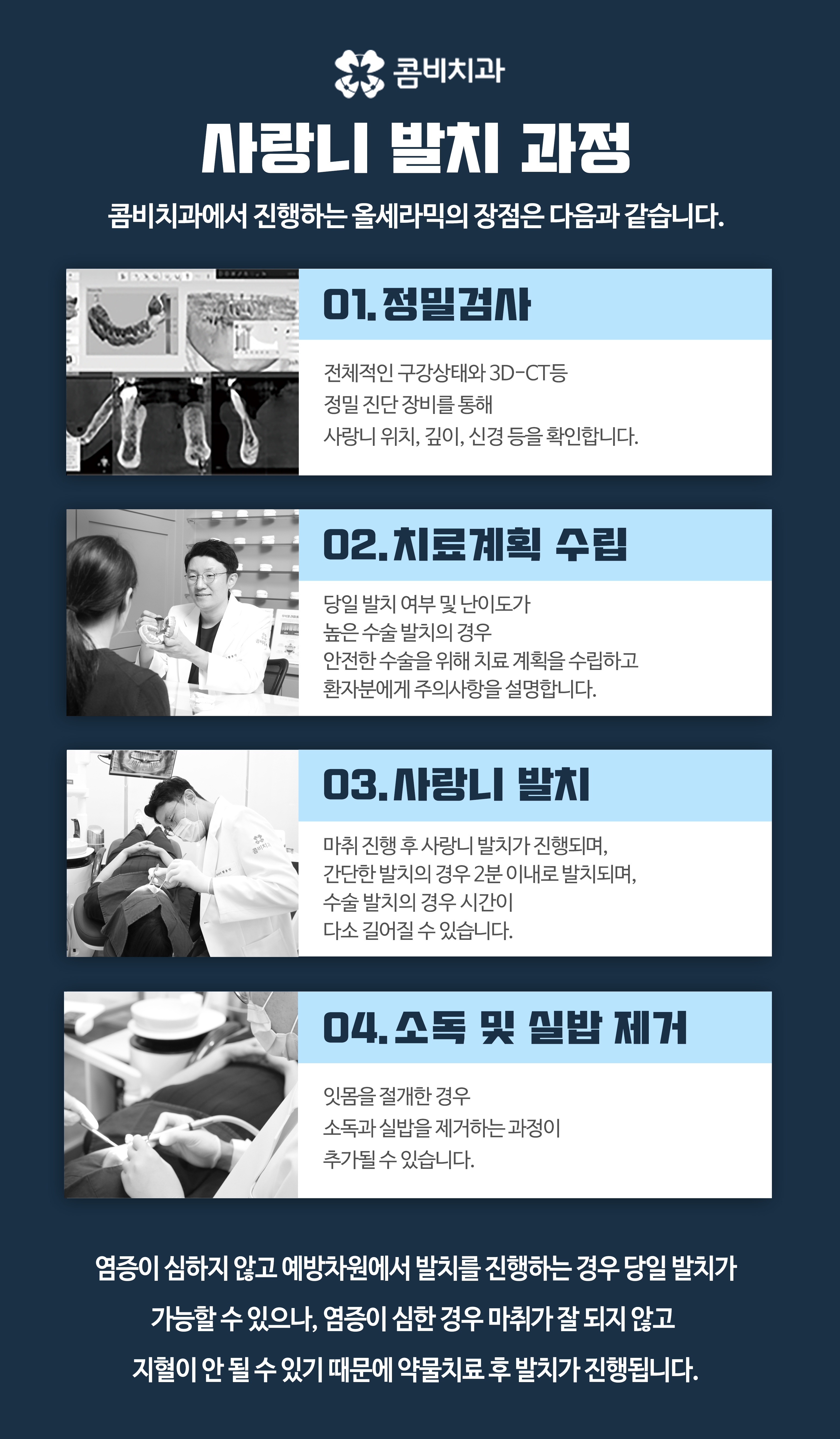 이처럼 사랑니가 문제되는 케이스는 단순히 아프고 안 아프고의 문제가 아니라 구조적인 문제와 관리의 어려움이 함께 작용하는 경우가 많아요. 그래서 사랑니가 문제를 일으키고 있다면 발치를 고려하게 되는 경우가 많아요. 다만 발치는 아무 준비 없이 갑자기 결정하는 치료가 아니라, 계획적으로 접근할수록 수월해질 수 있어요.